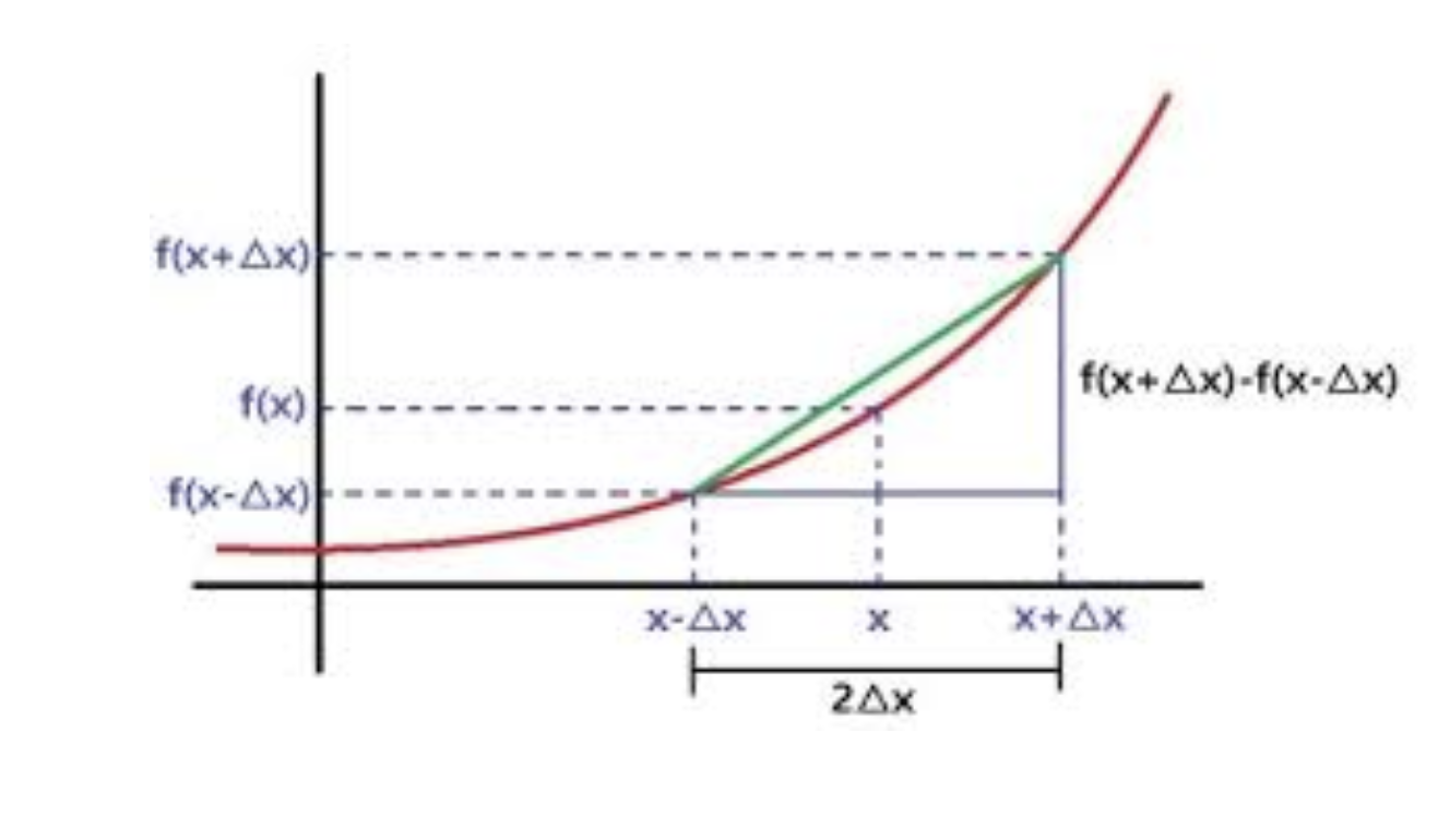 이 중앙 차분의 기울기를 구하는 것이 f(x)의 접선의 기울기값을 근사할 때 가장 도움이 된다고 알려져 있다.