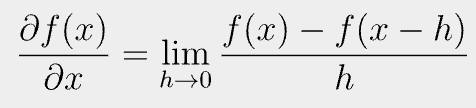 전방 차분에서와 다른 점은 x에 h만큼 마이너스가 되고 있다는 점이다. x보다 작은 값을 만들어서 f(x)의 접선의 기울기값을 근사하기 때문이다.